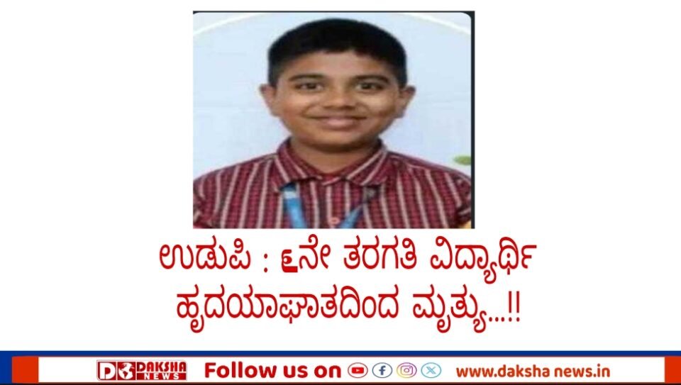 ಉಡುಪಿ : 6ನೇ ತರಗತಿ ವಿದ್ಯಾರ್ಥಿ ಹೃದಯಾಘಾತದಿಂದ ಮೃತ್ಯು…!!