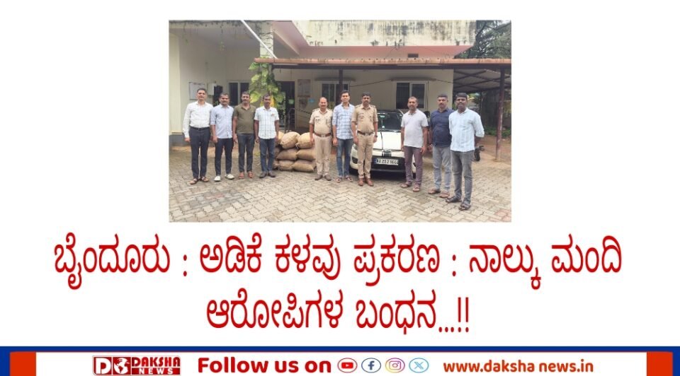 ಬೈಂದೂರು ಪೊಲೀಸ್ ಠಾಣಾ ವ್ಯಾಪ್ತಿಯಲ್ಲಿ ಅಡಿಕೆ ಕಳ್ಳತನ ಪ್ರಕರಣಗಳು ವರದಿಯಾಗಿದ್ದು, ಈ ಹಿನ್ನೆಲೆಯಲ್ಲಿ ಆರೋಪಿಗಳ ಪತ್ತೆಯ ಬಗ್ಗೆ ಉಡುಪಿ ಜಿಲ್ಲಾ ಪೊಲೀಸ್ ಅಧೀಕ್ಷಕರಾದ ಶ್ರೀ ಹರಿರಾಮ್ ಶಂಕರ ಐಪಿಎಸ್ ರವರ ಮಾರ್ಗದರ್ಶನದಲ್ಲಿ, ಹೆಚ್ಚುವರಿ ಪೊಲೀಸ್ ಅಧೀಕ್ಷಕರಾದ ಶ್ರೀ ಸುಧಾಕರ ನಾಯ್ಕ್ ಹಾಗೂ ಶ್ರೀ ಹೆಚ್ ಡಿ ಕುಲಕರ್ಣಿ ಉಪಾಧೀಕ್ಷಕರು ಕುಂದಾಪುರ ಉಪವಿಭಾಗರವರ ಹಾಗೂ ಶ್ರೀ ಸವೀತ್ರ ತೇಜ್ ಪೊಲೀಸ್ ವೃತ್ತ ನಿರೀಕ್ಷಕರು ಬೈಂದೂರು ರವರ ನೇತೃತ್ವದಲ್ಲಿ ಅಡಿಕೆ ಕಳ್ಳತನ ಪ್ರಕರಣಕ್ಕೆ ಸಂಬಂಧಪಟ್ಟಂತೆ ತನಿಖೆ ಮತ್ತು ಪತ್ತೆಗೆ 2 ತಂಡಗಳಾಗಿ ನೇಮಕ ಮಾಡಿದ್ದು ತಂಡದ ನೇತೃತ್ವವನ್ನು ಶ್ರೀ ತಿಮ್ಮೇಶ್ ಬಿ ಎನ್ ಪಿ.ಎಸ್.ಐ., ಶ್ರೀ ನವೀನ ಬೋರಕರ ಪಿ.ಎಸ್.ಐ. ಬೈಂದೂರು ಠಾಣೆ , ಶ್ರೀ ವಿನಯ ಪಿ.ಎಸ್.ಐ. ಕೊಲ್ಲೂರು ಠಾಣೆ ಮತ್ತು ಸಿಬ್ಬಂದಿಯವರಾದ ನಾಗೇಂದ್ರ ಹೆಚ್ ಸಿ ಕೊಲ್ಲೂರು ಠಾಣೆ, ಸುರೇಶ್ ಹೆಚ್ ಸಿ ಕೊಲ್ಲೂರು ಠಾಣೆ , ಚಿದಾನಂದ ಪಿಸಿ, ಮಾಳಪ್ಪ ದೇಸಾಯಿ ಪಿಸಿ, ಪರಯ್ಯ ಮಠಪತಿ ಪಿ ಸಿ ಬೈಂದೂರು ಠಾಣೆ, ರವೀಂದ್ರ ಪಿ ಸಿ ಬೈಂದೂರು ವೃತ್ತ , ಅಶೋಕ ಪಿಸಿ ಬೈಂದೂರು ವೃತ್ತ , ಹಾಗೂ ಚಂದ್ರ ಎಪಿಸಿ ಅವರ ತಂಡ ಆರೋಪಿತರಾದ 1) ಸಂತೋಷ(35) ತಂದೆ: ಅಣ್ಣಿ ಪೂಜಾರಿ, ವಾಸ: ಮಾವಿನ ಕಟ್ಟೆ, ನೂಜಿ ಬಾಳ್ತಿಲ ಗ್ರಾಮ, ಕಡಬ ತಾಲೂಕು, ದಕ್ಷಿಣ ಕನ್ನಡ ಜಿಲ್ಲೆ 2)ಶಾನೂರು ಬಾಬುಲಾಲ್ ನವಾಜ್ @ ನವಾಜ್ @ ಘಜ್ನಿ(31) ತಂದೆ: ದಿ. ಬಾಬುಲಾಲ್ ನವಾಜ್, ಖಾಯಂ ವಿಳಾಸ: ಮನೆ ನಂಬ್ರ-31,ಹವಳದ ಹಿಂಡಿನಗೆರೆ, ತಂಬೂರು ಅಂಚೆ, ಕಲಘಟಗಿ ತಾಲೂಕು, ಧಾರವಾಡ ಜಿಲ್ಲೆ. ಪ್ರಸ್ತುತ ವಾಸ: ಇಸ್ತಿಕಾರ್ ರವರ ಬಾಡಿಗೆ ಮನೆ, ಕೇಸರಗದ್ದೆ, ಬಿಲ್ಲಾಲ್ ಖಂಡ್, ಗುಳ್ಮಿ, ಮುಠಳ್ಳಿ ಗ್ರಾಮ, ಭಟ್ಕಳ ತಾಲೂಕು, ಉತ್ತರಕನ್ನಡ ಜಿಲ್ಲೆ