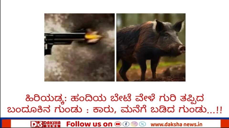 ಹಿರಿಯಡ್ಕ : ಉಡುಪಿ ಜಿಲ್ಲೆಯ ಹಿರಿಯಡ್ಕ ಸಮೀಪ ಹಂದಿಯ ಬೇಟೆ ವೇಳೆ ಗುರಿ ತಪ್ಪಿದ ಬಂದೂಕಿನ ಗುಂಡು ಕಾರು ಹಾಗೂ ಮನೆಯ ಬಾಗಿಲಿಗೆ ಬಡಿದ ಘಟನೆ ಆ.31ರಂದು ಮಧ್ಯರಾತ್ರಿ ವೇಳೆ ಕಣoಜಾರು ಬ್ರಹ್ಮಲಿಂಗೇಶ್ವರ ದೇವಸ್ಥಾನ ಸಮೀಪ ಸಂಭವಿಸಿದೆ.