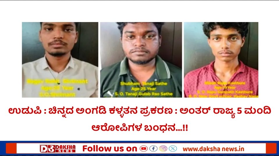 ಪ್ರಕರಣದಲ್ಲಿ ಆರೋಪಿ ಮತ್ತು ಸ್ವತ್ತು ಪತ್ತೆಯ ಬಗ್ಗೆ ಉಡುಪಿ ನಗರ ಪೊಲೀಸ್ ಠಾಣೆಯ ಪೊಲೀಸ್ ನಿರೀಕ್ಷಕರಾದ ಮಂಜುನಾಥ್ ವಿ.ಬಡಿಗೇರ. ನೇತೃತ್ವದಲ್ಲಿ ಪಿಎಸ್ಐ ಭರತೇಶ ಕಂಕಣವಾಡಿ, ಕಾಫು ಠಾಣಾ ಪಿಎಸ್ಐ ತೇಜಸ್ವಿ ಟಿ.ಐ ಕೊಲ್ಲೂರು ಠಾಣಾ ಪಿಎಸ್ಐ ವಿನಯಕುಮಾರ್ ಕೆ. ಸಿಬ್ಬಂದಿಯವರಾದ ಹರೀಶ್ ಎಎಸ್ಐ, ಜೀವನ್ ಕುಮಾರ್, ಪ್ರಸನ್ನ ಕುಮಾರ್, ಸಂತೋಷ್ ಶೆಟ್ಟಿ, ಸಂತೋಷ್ ರಾಥೋಡ್, ಶಿವಕುಮಾರ್, ಹೇಮಂತ್ಕುಮಾರ್ ಎಂ.ಆರ್, ಸುನೀಲ್ ರಾಥೋಡ್, ಮಣಿಪಾಲ್ ಠಾಣಾ ರವಿರಾಜ್ ಕೊಲ್ಲೂರು ಠಾಣೆ ನಾಗೇಂದ್ರ ಹಾಗೂ ಮಹಾರಾಷ್ಟ್ರರಾಜ್ಯದ ಅಕ್ಲುಜ್ ಪೋಲೀಸ್ ಠಾಣಾ ಸಿಬ್ಬಂದಿಯವರಾದ ಎಸ್ ಆರ್ ಮಾದುಬಾವಿ, ವಿಬಿ ಘಾಟಗೆ, ವಿಎ ಸಾಟೆರವರ ತಂಡ ಪ್ರಕರಣದಲ್ಲಿನ ಆರೋಪಿಳಾದ 1) ಶುಭಂ ತಾನಾಜಿ ಸಾಥೆ(25), ತಂದೆ: ತಾನಾಜಿ ಗುಲ್ಬ್ರಾವೀ ಸಾಥೆ, ಕೇಶವ ನಗರ, ನಿಮ್ಗಾಂವ್ ಮಗರ್, ಮಲ್ಶಿರೋಸ್ ತಾಲೂಕು, ಸೋಲಾಪುರ ಜಿಲ್ಲೆ ಮಹಾರಾಷ್ಟ್ರ ರಾಜ್ಯ, 2) ಪ್ರವೀಣ ಅಪ್ಪ ಸಾಥೆ (23), ತಂದೆ: ಅಪ್ಪ ಶ್ಯಾಮರಾವ್ ಸಾಥೆ, ಕೇಶವ ನಗರ, ನಿಮ್ಗಾಂವ್ನ ಮಗರ್, ಮಲ್ಶಿರೋಸ್ ತಾಲೂಕು, ಸೋಲಾಪುರ ಜಿಲ್ಲೆ ಮಹಾರಾಷ್ಟ್ರ ರಾಜ್ಯ, 3) ನಿಲೇಶ ಬಾಪು ಕಸ್ತೂರಿ(19), ತಂದೆ: ಬಾಪು ಸಂಪತ್ ಕಸ್ತೂರಿ, ಕೇಶವ ನಗರ, ನಿಮ್ಗಾಂವ್ನ ಮಗರ್, ಮಲ್ಶಿರೋಸ್ ತಾಲೂಕು, ಸೋಲಾಪುರ ಜಿಲ್ಲೆ ಮಹಾರಾಷ್ಟ್ರ ರಾಜ್ಯ, 4) ಸಾಗರ ದತ್ತಾತ್ರೇಯ ಕಂಡಗಾಲೆ(32), ತಂದೆ:ದತ್ತಾತ್ರೇಯ ಚಾಂಗ್ದೇವ್ ಕಂಡಗಾಲೆ, ಕಂಡಾಲಿ, ಮಾಲ್ಶೀರೋಸ್ ತಾಲೂಕು, ಸೋಲಾಪುರ ಜಿಲ್ಲೆ ಮಹಾರಾಷ್ಟ್ರ ರಾಜ್ಯ, 5) ಬಾಗವ ರೋಹಿತ್ ಶ್ರೀಮಂತ್(25), ತಂದೆ: ಬಾಗವ ಶ್ರೀಮಂತ್, ಮಾಲ್ಶಿರಾಸ್, ಅಕ್ಲೂಜ್, ಸೋಲಾಪುರ, ಮಹಾರಾಷ್ಟ್ರ ರಾಜ್ಯ ಇವರುಗಳನ್ನು ದಿನಾಂಕ: 12.09.2025 ರಂದು ಮಹಾರಾಷ್ಟ್ರ ಜಿಲ್ಲೆ ಸೋಲಾಪುರ ಜಿಲ್ಲೆ ಮಲ್ಶಿರೋಸ್ ತಾಲೂಕು, ನಿಮ್ಗಾಂವ್, ಎಂಬಲ್ಲಿ ವಶಕ್ಕೆ ಪಡೆದು ಆರೋಪಿಗಳಿಂದ 1) 748.8 ಗ್ರಾಂ ಚಿನ್ನ ಅಂದಾಜು ಮೌಲ್ಯ ರೂ 74,88,000/-, 2) 4 ಕೆಜಿ 445 ಗ್ರಾಂ ಬೆಳ್ಳಿ ಅಂದಾಜು ಮೌಲ್ಯ 3,60,000/-, 3) ನಗದು ಹಣ 5,00,000/-, 4) ಕೃತ್ಯಕ್ಕೆ ಬಳಸಿದ ಮಾರುತಿ ಸ್ವಿಪ್ಟ ಕಾರು ಅಂದಾಜು ಮೌಲ್ಯ 4,00,000/-, ಒಟ್ಟು ರೂ 87,48,000 ಮೌಲ್ಯದ ಸೊತ್ತುಗಳನ್ನು ಸ್ವಾಧೀನ ಪಡಿಸಿಕೊಳ್ಳಲಾಗಿರುತ್ತದೆ.