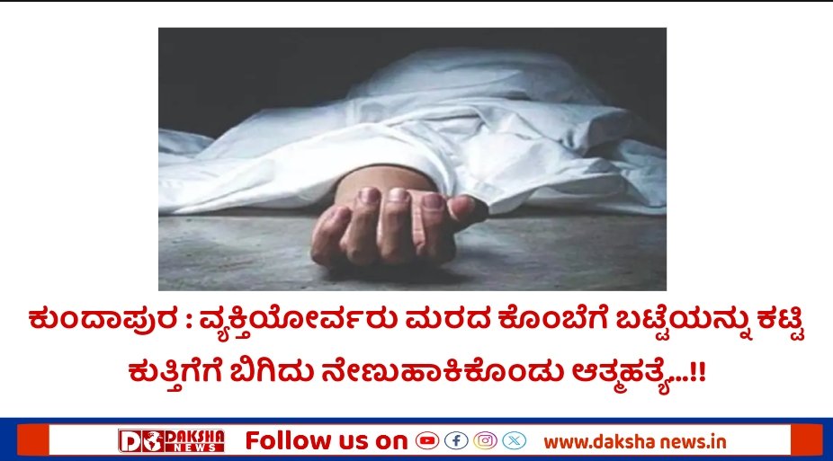 ಅಮಾಸೆಬೈಲು: ಉಡುಪಿ ಜಿಲ್ಲೆಯ ಕುಂದಾಪುರ ಸಮೀಪ ಅಮಾಸೆಬೈಲು ಎಂಬಲ್ಲಿ ವ್ಯಕ್ತಿಯೋರ್ವರು ಮರದ ಕೊಂಬೆಗೆ ಬಟ್ಟೆಯನ್ನು ಕಟ್ಟಿ ಕುತ್ತಿಗೆಗೆ ಬಿಗಿದು ನೇಣುಹಾಕಿಕೊಂಡು ಆತ್ಮಹತ್ಯೆ ಮಾಡಿಕೊಂಡ ಘಟನೆ ಸಂಭವಿಸಿದೆ.