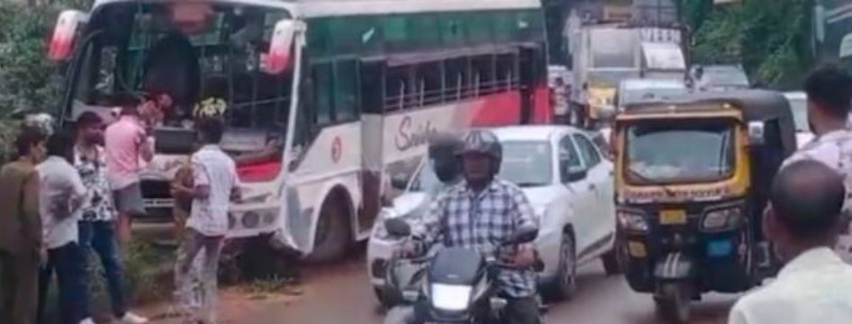 ಮಂಗಳೂರು: ನಂತೂರು ಸಮೀಪ ಸಿಟಿ ಬನ್ನೊಂದು ನಿಯಂತ್ರಣ ತಪ್ಪಿ ಡಿವೈಡರ್ಗೆ ಡಿಕ್ಕಿಯಾದ ಘಟನೆ ಮಂಗಳವಾರ ಬೆಳಿಗ್ಗೆ ಸಂಭವಿಸಿದೆ.ಘಟನೆಯಿಂದ ಯಾರಿಗೂ ಅಪಾಯ ಸಂಭವಿಸಿಲ್ಲ.ಆದರೆ ಬಸ್ನ ಮುಂಭಾಗ ಸಂಪೂರ್ಣ ನಜ್ಜುಗುಜ್ಜಾಗಿದೆ ಎಂದು ತಿಳಿದು ಬಂದಿದೆ.