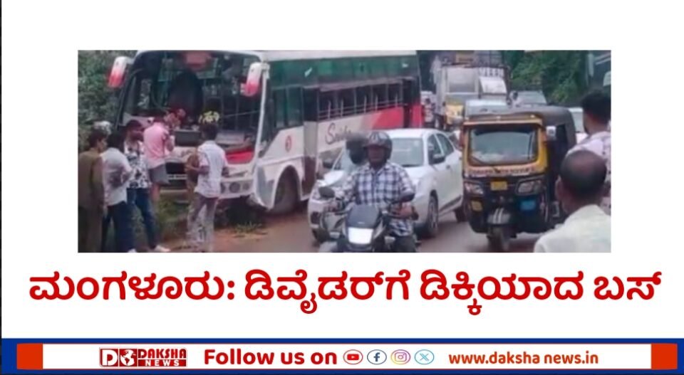ವಾಮಂಜೂರು ಕಡೆಯಿಂದ ಬರುತ್ತಿದ್ದ ಸಾಯೀಷ ಎಂಬ ಸಿಟಿ ಬಸ್ ನಂತೂರು ಸಿಗ್ನಲ್ ದಾಟಿ ಮಲ್ಲಿಕಟ್ಟೆ ಕಡೆಗೆ ಬರುತ್ತಿತ್ತು. ಬಸ್ ಮುಂಭಾಗ ಶಾಲಾ ಬಸ್ ಸಾಗುತ್ತಿದ್ದು, ಹಿಂಭಾಗ ಮತ್ತೊಂದು ಬಸ್ ಬರುತ್ತಿತ್ತು ಎಂದು ಹೇಳಲಾಗಿದೆ.ಈ ಸಂದರ್ಭ ಬಸ್ನ ಸ್ಟೇರಿಂಗ್ ಲಾಕ್ ಎಂಡ್ ಕಟ್ ಆಗಿ, ಟೈರ್ ನಿಯಂತ್ರಣ ಕಳೆದುಕೊಂಡು ಬಸ್ ಡಿವೈಡರ್ಗೆ ಡಿಕ್ಕಿಯಾಗಿದೆ. ಇದರಿಂದ ಬೀದಿ ದೀಪದ ಕಂಬವೊಂದು ಉರುಳಿ ಬಿದ್ದಿತು.ರಸ್ತೆಯ ವಿರುದ್ದ ಭಾಗದಲ್ಲೂ ಸಾಕಷ್ಟು ವಾಹನಗಳು ಸಾಗುತ್ತಿದ್ದು, ಅದೃಷ್ಟವಶಾತ್ ಯಾರಿಗೂ ಅಪಾಯ ಉಂಟಾಗಿಲ್ಲ ಎಂದು ತಿಳಿದು ಬಂದಿದೆ.ಘಟನಾ ಸ್ಥಳಕ್ಕೆ ಸಂಚಾರ ಪೊಲೀಸರು ಧಾವಿಸಿದ್ದು, ಬಸ್ಸನ್ನು ಜೆಸಿಬಿ ಮೂಲಕ ತೆರವುಗೊಳಿಸಿ ಸುಗಮ ಸಂಚಾರಕ್ಕೆ ಅನುವು ಮಾಡಿಕೊಡಲಾಯಿತು ಎಂದು ತಿಳಿದು ಬಂದಿದೆ.