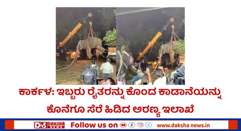 ಕಾರ್ಕಳ, ನವೆಂಬರ್ 3: ಕುದುರೆಮುಖ ರಾಷ್ಟ್ರೀಯ ಉದ್ಯಾನವನ ಪ್ರದೇಶದ ಕೆರೆಕಟ್ಟೆ ಬಳಿ ಇಬ್ಬರು ರೈತರ ಪ್ರಾಣವನ್ನು ಬಲಿ ಪಡೆದಿದ್ದ ಕಾಡು ಆನೆಯನ್ನು ಅರಣ್ಯ ಇಲಾಖೆ ಎರಡು ದಿನಗಳ ವ್ಯಾಪಕ ಕಾರ್ಯಾಚರಣೆಯ ನಂತರ ಕೊನೆಗೂ ಸೆರೆಹಿಡಿಯಲಾಗಿದೆ.