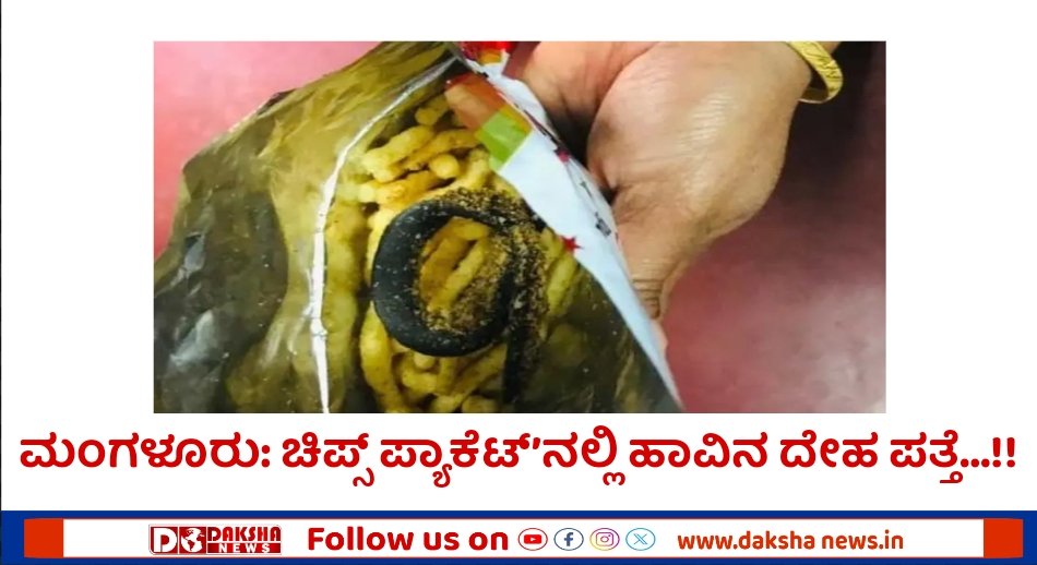 ಮಂಗಳೂರು : ಮುಂಡಾಜೆಯ ಸೋಮಂತಡ್ಕದ ಅಂಗಡಿಯೊಂದರಲ್ಲಿ ಖರೀದಿಸಿದ ಜಂಕ್ ಫುಡ್ ಪೊಟ್ಟಣದಲ್ಲಿ ಸುಟ್ಟು ಕರಕಲಾದ ಸಣ್ಣ ಹಾವಿನ ರೀತಿಯ ವಸ್ತು ಪತ್ತೆಯಾದ ಘಟನೆ ನಡೆದಿದೆ.