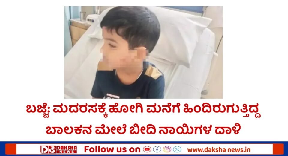 ಬಜ್ಜೆ: ಬಟ್ಟೆ ಕಂದಾವರ ಗ್ರಾಮ ಪಂಚಾಯತ್ ವ್ಯಾಪ್ತಿಯ ಸೌಹಾರ್ದ ನಗರದಲ್ಲಿ ಮದರಸಕ್ಕೆ ಹೋಗಿ ಮನೆಗೆ ಹಿಂದಿರುಗುತ್ತಿದ್ದ 6 ವರ್ಷದ ಬಾಲಕನ ಮೇಲೆ ಬೀದಿ ನಾಯಿಗಳು ದಾಳಿ ನಡೆಸಿದ ಘಟನೆ ನಡೆದಿದೆ.