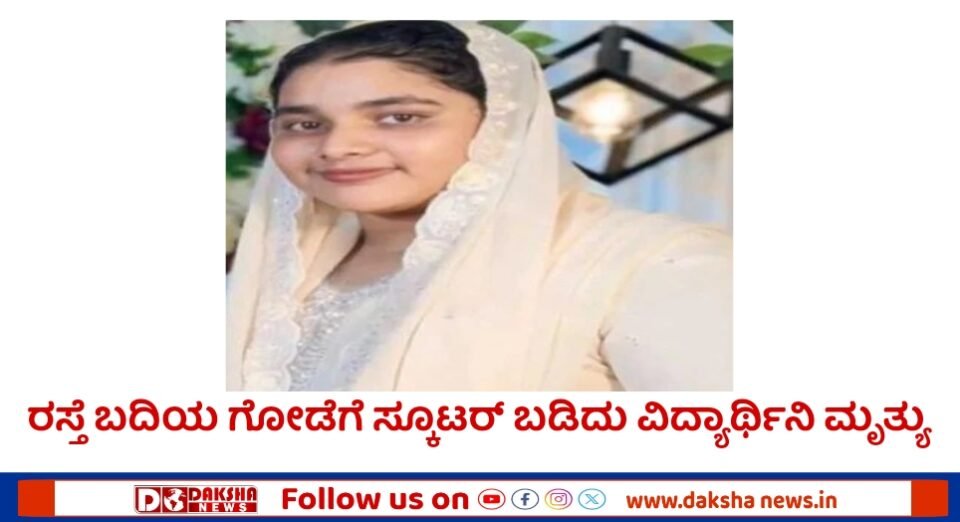 ಕಾಸರಗೋಡು: ಕುಂಬಳೆ ಪೂಕಟ್ಟೆ ಎಂಬಲ್ಲಿ ಸ್ಕೂಟರ್ ನಿಯಂತ್ರಣ ತಪ್ಪಿ ರಸ್ತೆ ಬದಿಯ ಗೋಡೆಗೆ ಬಡಿದು ವಿದ್ಯಾರ್ಥಿನಿ ಮೃತಪಟ್ಟ ಘಟನೆ ನಡೆದಿದೆ.ಮೃತ ವಿದ್ಯಾರ್ಥಿನಿಯನ್ನು ಬಂಬ್ರಾಣ ಚೂರಿತ್ತಡ್ಕ ನಿವಾಸಿ ರಝಾಕ್-ರಂಶೀನಾ ದಂಪತಿಯ ಪುತ್ರಿ ರಿಸ್ವಾನ (15) ಎಂದು ಗುರುತಿಸಲಾಗಿದೆ.