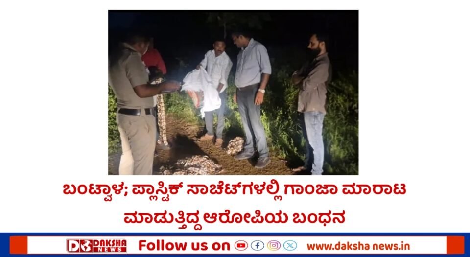 ಬಂಟ್ವಾಳ; ಪ್ಲಾಸ್ಟಿಕ್ ಸಾಚೆಟ್ಗಳಲ್ಲಿ ಗಾಂಜಾ ಮಾರಾಟ ಮಾಡುತ್ತಿದ್ದ ಆರೋಪಿಯನ್ನು ಅಬಕಾರಿ ದಳದವರು ಬಂಧಿಸಿದ್ದಾರೆ. ಸಂತೋಷ್ ಸೋಂಕರ್(28) ಬಂಧಿತ ಆರೋಪಿ.