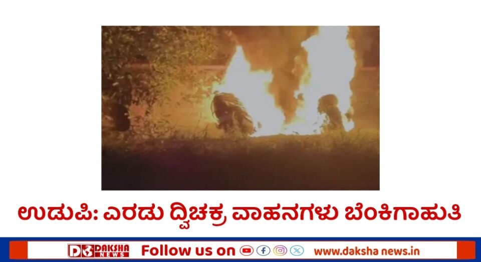 ಉಡುಪಿ: ಉಡುಪಿ ಕಿನ್ನಿಮೂಲ್ಕಿ ಸ್ವಾಗತ ಗೋಪುರದ ಬಳಿ ರಸ್ತೆಯ ಬದಿಯಲ್ಲಿ ನಿಲ್ಲಿಸಿದ್ದ ಎರಡು ದ್ವಿಚಕ್ರ ವಾಹನಗಳು ಆಕಸ್ಮಿಕವಾಗಿ ಬೆಂಕಿ ತಗುಲಿ ಸುಟ್ಟು ಕರಕಲಾದ ಘಟನೆ ನಡೆದಿದೆ.ರಸ್ತೆ ಬದಿ ನಿಲ್ಲಿಸಿ ಹೋಗಿದ್ದ ಎರಡು ದ್ವಿಚಕ್ರ ವಾಹನಗಳಲ್ಲಿ ಬೆಂಕಿ ಕಾಣಿಸಿಕೊಂಡಿದ್ದು, ಇದನ್ನು ಗಮನಿಸಿದ ಸ್ಥಳೀಯರು ಕೂಡಲೇ ಅಗ್ನಿಶಾಮಕ ದಳಕ್ಕೆ ಮಾಹಿತಿ ನೀಡಿದರು. ತಕ್ಷಣ ಸ್ಥಳಕ್ಕೆ ಆಗಮಿಸಿದ ಅಗ್ನಿ ಶಾಮಕ ಇಲಾಖೆಯ ಸಿಬ್ಬಂದಿ ಬೆಂಕಿ ನಂದಿಸುವಲ್ಲಿ ಯಶಸ್ವಿಯಾಗಿದ್ದಾರೆ ಎಂದು ತಿಳಿದು ಬಂದಿದೆ.