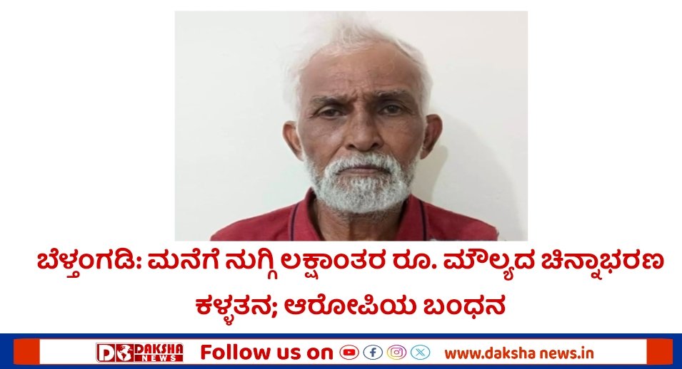 ಬೆಳ್ತಂಗಡಿ:ಕುತ್ಲೂರಿನಲ್ಲಿ ಮನೆಗೆ ನುಗ್ಗಿ ಲಕ್ಷಾಂತರ ರೂ. ಮೌಲ್ಯದ ಚಿನ್ನಾಭರಣ ಕಳ್ಳತನ ಮಾಡಿದ ಪ್ರಕರಣದ ಆರೋಪಿಯೊಬ್ಬನನ್ನು ವೇಣೂರು ಪೊಲೀಸರು ಬಂಧಿಸಿದ್ದಾರೆ.