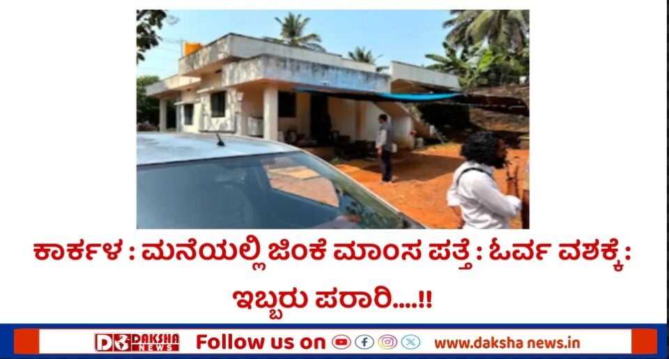 ಕಾರ್ಕಳ: ಉಡುಪಿ ಜಿಲ್ಲೆಯ ಕಾರ್ಕಳ ತಾಲೂಕಿನ ದುರ್ಗಾ ಗ್ರಾಮದ ತೆಳ್ಳಾರಿನ ಮನೆಯಲ್ಲಿ 17 ಕೆಜಿ ಜಿಂಕೆ ಮಾಂಸ ಪತ್ತೆಯಾದ ಘಟನೆ ಬೆಳಕಿಗೆ ಬಂದಿದೆ. ಅಕ್ರಮ ಗೋ ಹತ್ಯೆ ಪ್ರಕರಣದ ಸುಳಿವು ಆಧರಿಸಿ ಗ್ರಾಮಾಂತರ ಠಾಣೆ ಪೊಲೀಸರು ನಡೆಸಿದ ದಾಳಿ ವೇಳೆ ಜಿಂಕೆ ಮಾಂಸ ಪತ್ತೆಯಾಗಿದೆ.