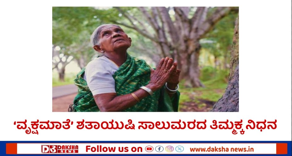 ಬೆಂಗಳೂರು: ಉಸಿರಾಟದ ಸಮಸ್ಯೆಯಿಂದ ಬಳಲುತ್ತಿದ್ದ ಪದ್ಮಶ್ರೀ ಪುರಸ್ಕೃತರಾದ ಸಾಲುಮರದ ತಿಮ್ಮಕ್ಕ (114) ವಿಧಿವಶರಾಗಿದ್ದಾರೆ. ಅನಾರೋಗ್ಯದಿಂದ ಬಳಲುತ್ತಿದ್ದ ಅವರಿಗೆ ಜಯನಗರ ಖಾಸಗಿ ಆಸ್ಪತ್ರೆಯಲ್ಲಿ ಚಿಕಿತ್ಸೆ ನೀಡಲಾಗುತ್ತಿತ್ತು. ಆದರೆ ಚಿಕಿತ್ಸೆ ಫಲಿಸದೆ ಇಂದು ಮಧ್ಯಾಹ್ನ 12 ಗಂಟೆಗೆ ನಿಧನ ಹೊಂದಿದ್ದಾರೆ ಎಂದು ಆಸ್ಪತ್ರೆಯ ಮೂಲಗಳು ತಿಳಿಸಿವೆ.