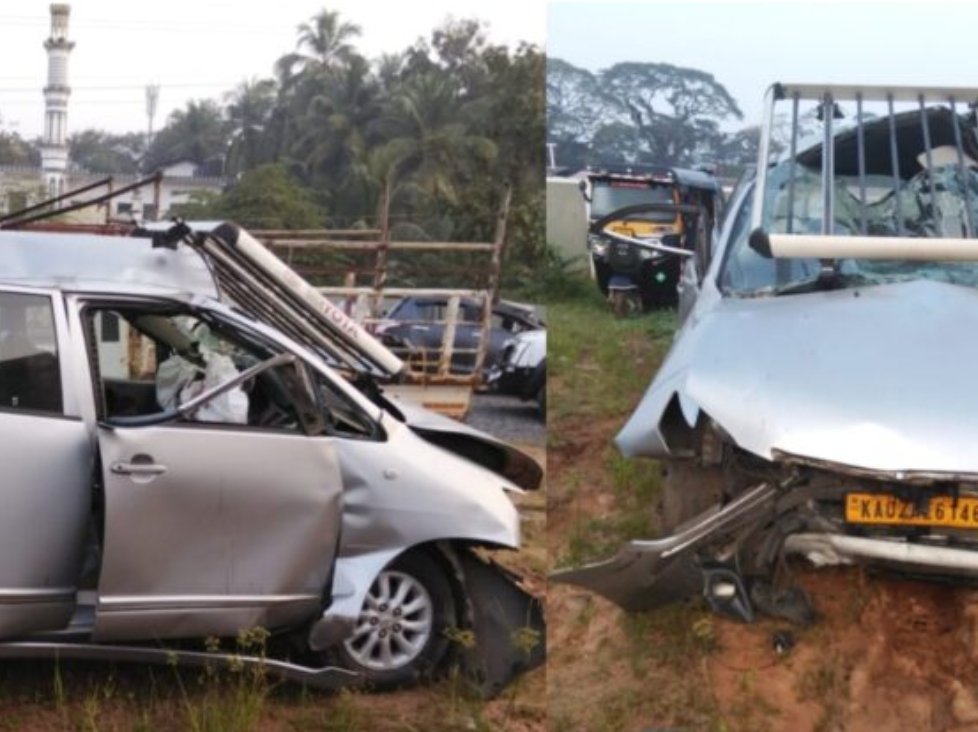 ಅಪಘಾತದಿಂದ ಕಾರು ಸಂಪೂರ್ಣ ಜಖಂಗೊಂಡಿದೆ.