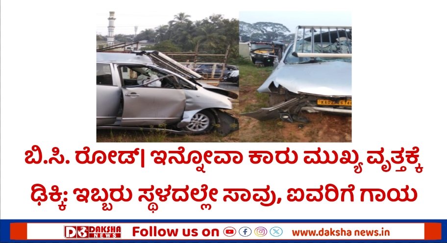 ಬಂಟ್ವಾಳ : ಇನೋವಾ ಕಾರೊಂದು ಬಿ.ಸಿ.ರೋಡ್ ಮುಖ್ಯ ವೃತ್ತಕ್ಕೆ ಡಿಕ್ಕಿ ಹೊಡೆದು ಇಬ್ಬರು ಸ್ಥಳದಲ್ಲೇ ಮೃತಪಟ್ಟು ಐವರು ಗಾಯಗೊಂಡಿರುವ ಬಗ್ಗೆ ವರದಿಯಾಗಿದೆ. ಬೆಂಗಳೂರಿನಿಂದ ಮಂಗಳೂರಿಗೆ ತೆರಳುತ್ತಿದ್ದ ಕಾರು ಶನಿವಾರ ಮುಂಜಾನೆ 5ರ ವೇಳೆಗೆ ಬಿ.ಸಿ.ರೋಡಿನ ಬ್ರಹ್ಮಶ್ರೀ ನಾರಾಯಣ ಗುರು ವೃತ್ತಕ್ಕೆ ನೇರವಾಗಿ ಡಿಕ್ಕಿ ಹೊಡೆದಿದ್ದು , ಇಬ್ಬರು ಸ್ಥಳದಲ್ಲೇ ಮೃತಪಟ್ಟು ಐವರು ಗಾಯಗೊಂಡಿದ್ದಾರೆ ಎಂದು ತಿಳಿದುಬಂದಿದೆ.