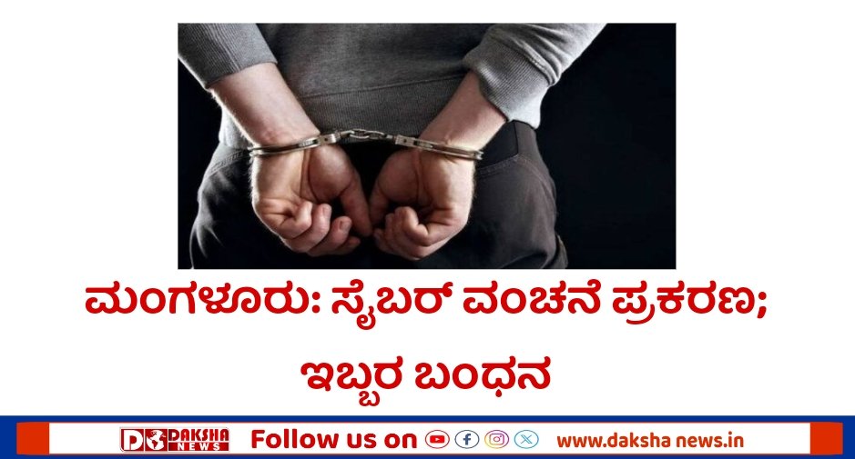 ಮಂಗಳೂರು: ಮಂಗಳೂರು ನಗರ ಪೊಲೀಸರು ನಡೆಸಿದ ಕಾರ್ಯಾಚರಣೆಯಲ್ಲಿ ಕಸ್ಟಮ್ಸ್ ಹೆಸರಿನಲ್ಲಿ ಬ್ಯಾಂಕ್ ಗ್ರಾಹಕರ ಖಾತೆಯಿಂದ ಹಣ ಎಗರಿಸುತ್ತಿದ್ದ ಸೈಬರ್ ವಂಚನೆ ಪ್ರಕರಣದ ಇಬ್ಬರು ಆರೋಪಿಗಳನ್ನು ಬಂಧಿಸಿದ್ದಾರೆ. ಬಂಧಿತ ಆರೋಪಿಗಳು ತ್ರಿಪುರಾ ತಾಜ್ಯದ ಧಲೈನ ದಮೆನ್ ಜೋಯ್ ರಿಯಾಂಗ್(27) ಮತ್ತು ಮಣಿಪುರದ ಕಾಂಗ್ರೆನ ಹ್ಯಾಂಗ್ ರಿಯಲ್ ಕೋಮ್ ಯಾನೆ ಮಂಗ್ ತೆ ಅಮೋಶ್ (33) ಎಂದು ತಿಳಿದು ಬಂದಿದೆ.