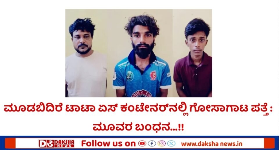 ಮೂಡುಬಿದಿರೆ: ದಕ್ಷಿಣ ಕನ್ನಡ ಜಿಲ್ಲೆಯ ಮೂಡುಬಿದಿರೆ ತಾಲೂಕು ಅಂಚಿನ ಹೊಸ್ಮಾರು- ನೆಲ್ಲಿಕಾರು ಬಳಿ ಟಾಟಾ ಏಸ್ ಕಂಟೇನರ್ ವಾಹನವನ್ನು ಪೊಲೀಸರು ತಡೆದು ಪರಿಶೀಲಿಸಿದಾಗ ಅಕ್ರಮವಾಗಿ ಗೋ ಸಾಗಣೆ ಮಾಡುತ್ತಿದ್ದ ಪ್ರಕರಣ ಬೆಳಕಿಗೆ ಬಂದಿದೆ.ಪ್ರಕರಣದಲ್ಲಿ ಮನ್ಸೂರ್ ಅದ್ಯಪಾಡಿ, ಮೊಹಮ್ಮದ್ ಅಶ್ವದ್ ಮತ್ತು ಅಬ್ದುಲ್ ಮೊಹಮ್ಮದ್ ನಿಶಾಮ್ ಎಂಬ ಮೂವರು ಆರೋಪಿಗಳನ್ನು ಗುರುತಿಸಲಾಗಿದೆ.ಆರೋಪಿಗಳು ಕಾನೂನು ಉಲ್ಲಂಘಿಸಿ ಮೂರು ದನಗಳನ್ನು ಸಾಗಿಸುತ್ತಿದ್ದರು ಎಂದು ಪೊಲೀಸರು ತಿಳಿಸಿದ್ದಾರೆ.