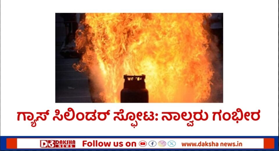 ಹಾಸನ: ಅಡುಗೆ ಮಾಡುವಾಗ ಗ್ಯಾಸ್ ಸಿಲಿಂಡರ್ ಸ್ಪೋಟಗೊಂಡು ನಾಲ್ವರಿಗೆ ಗಂಭೀರ ಗಾಯಗೊಂಡಿರುವ ಘಟನೆ ಅರಕಲಗೂಡು ಪಟ್ಟಣದ, ಹೆಂಟಗೆರೆ ವಾರ್ಡ್ ನಂ.17 ರಲ್ಲಿ ಸಂಭವಿಸಿದೆ.