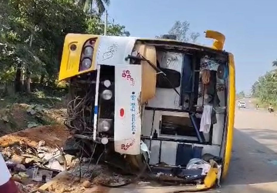 ಕಾರ್ಕಳ: ಮಂಗಳೂರಿನಿಂದ ಕಾರ್ಕಳ ಆಗಿ ದಾವಣಗೆರೆ ಸಾಗುತ್ತಿದ್ದ ಶ್ರೀ ದುರ್ಗಾಂಬಾ ಬಸ್ ಬುಧವಾರ ರಾತ್ರಿ ಜೋಡುಕಟ್ಟೆಯಲ್ಲಿ ಪಲ್ಟಿಯಾಗಿದೆ.