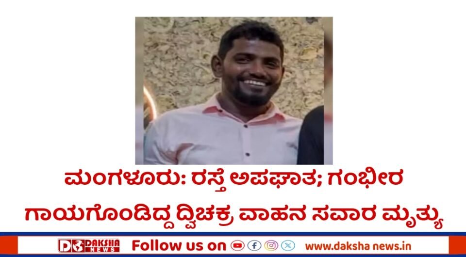 ಮಂಗಳೂರು: ರಾ.ಹೆ.75ರ ಅಡ್ಯಾರ್-ವಳಚ್ಚಿಲ್ ಮಧ್ಯೆ ಇರುವ ಸೋಮನಾಥ ಕಟ್ಟೆಯ ಬಳಿ ಸೋಮವಾರ ಮಧ್ಯಾಹ್ನ ಸಂಭವಿಸಿದ ರಸ್ತೆ ಅಪಘಾತದಲ್ಲಿ ಗಂಭೀರ ಗಾಯಗೊಂಡಿದ್ದ ದ್ವಿಚಕ್ರ ವಾಹನ ಸವಾರ ಮೃತಪಟ್ಟ ಘಟನೆ ನಡೆದಿದೆ.ಮೃತರನ್ನು ಅಡ್ಯಾರ್ ಕಣ್ಣೂರು ನಿವಾಸಿ ಇಟ್ಬಾಲ್ (42) ಎಂದು ಗುರುತಿಸಲಾಗಿದೆ.